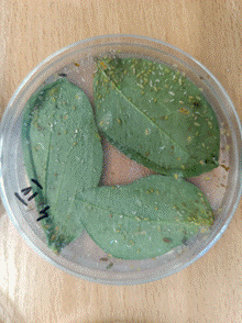 Fot. 9. Ocena wpływu ozonu na mszyce – test szalkowy z liśćmi bobu