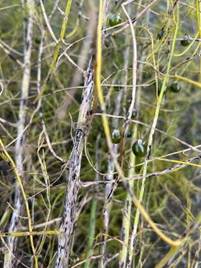W obydwu badanych uprawach szparaga, w końcowych fazach wegetacji, na licznych roślinach zaobserwowano fazy uredinialne (fot. 5) i telialne (fot. 6) Puccinia asparagi. Rdza szparaga uznawana jest za najgroźniejszą chorobę badanego gatunku. Nie stwierdzono istotnych różnic pomiędzy kombinacjami doświadczenia. Zastosowanie do dezynfekcji ozonu spowodowało redukcję kolonizacji gałęziaków szparaga w Biskupicach przez bakterie w porównaniu do kontroli oraz oprysku pestycydami i w połączeniu z ozonem i biopestycydem. Nie stwierdzono również różnic pomiędzy liczbą szkodników glebowych w glebie podlewanej ozonem w porównaniu do kontroli (podlewanie wodą).