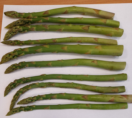 W pakowalni w Poświętnie wykonano pomiary biometryczne wypustek w celu określenia cech, takich jak: masa jednostkowa, długość wypustki oraz średnica u podstawy i pod główką. Po potraktowaniu wypustek wodą ozonowaną, w tym samym dniu zmierzono poziom chlorofilu oraz parametry, które pozwalają ocenić poziom stresu w zebranych częściach jadalnych roślin. Wypustki szparaga z obiektu kontrolnego oraz moczone w wodzie ozonowanej przechowywane były w chłodni, w temperaturze 2ᵒC. Co 4 dni kontynuowane były pomiary parametrów stresu przy użyciu aparatu Opti – Sciences CCM300. Obliczono również ubytek masy wypustek. Takimi samymi badaniami objęto również wypustki zielone i białe zakupione od innych producentów. W Biskupicach, w okresie od sierpnia do września wykonano opryski plantacji szparaga wodą ozonowaną wytwarzanym bezpośrednio na polu, pestycydami, sama wodą, wodą ozonowaną z biopreparatem. Po opryskach określano liczebność agrofagów w każdej kombinacji metodą czerpakowania i odłowu na kołki pokryte klejem. Po zabiegu wykonano również odkrywki glebowe na głębokości 25 cm o wielkości 20×20 cm. Glebę przebrano ręcznie i z wykorzystaniem sita w celu identyfikacji szkodników.